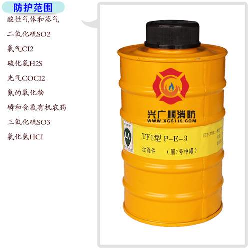 7號(hào)罐:防護(hù)對(duì)象:酸性氣體與蒸氣:二氧化硫、氯氣、硫化氫、氮的氧化物、光氣、磷和含氯的有機(jī)農(nóng)藥。